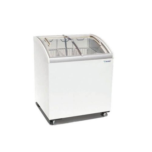 Congelador vertical, sistema de enfriamiento mediante placas frías en aluminio, capacidad de 15 pies cúbicos, puerta de cristal con perfil de aluminio anodizado, cuatro niveles de exhibición, unidad 1/3 HP, gas refrigerante R-290