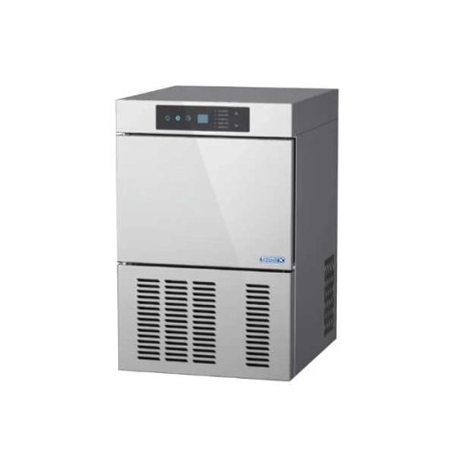 Cuenta con aislamiento en poliuretano inyectado, puerta abatible frontal y tiene una capacidad de producción de 160 kg cada 24 horas, con un depósito de 105 kg. El evaporador es de acero inoxidable y el sistema de enfriamiento es por aire. Incluye un filtro de agua.