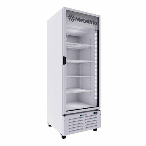 Refrigerador vertical de 1 puerta de vidrio, 24 pies cúbicos, interior de aluminio y piso interior de acero inoxidable 304, refrigeración R-290 e iluminación LED interior.