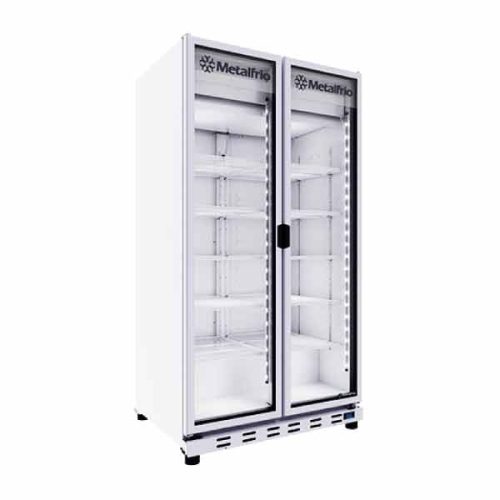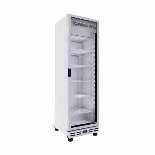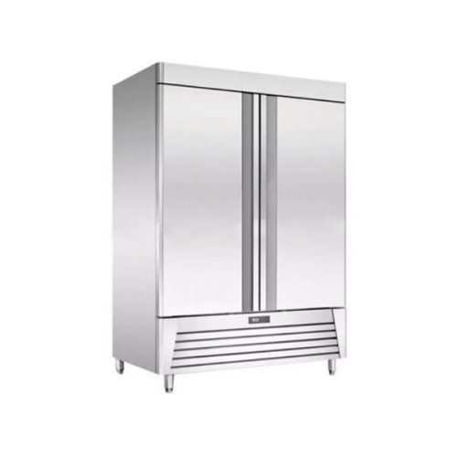 Refrigerador vertical de 23 pies cúbicos (650 L), fabricado en acero inoxidable interior y exterior. Funciona en ambientes de hasta 38°C, con temperatura ajustable de 1 a 8°C mediante control digital.