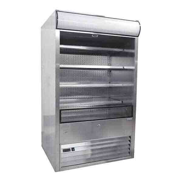 El mural de autoservicio refrigerado está fabricado en lámina de acero inoxidable, con rejilla inferior y entrepaños también en acero inoxidable. Cuenta con 4 entrepaños y un piso abierto, diseñado para mantener los productos a temperaturas de 2 a 10 °C. Incorpora una cortina nocturna que ayuda a conservar la temperatura durante el cierre y un control digital de temperatura con display para facilitar el ajuste.