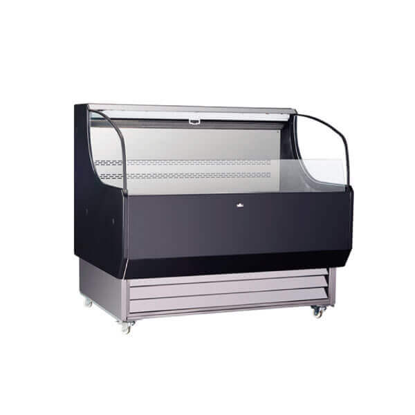 El tramo abierto refrigerado de bajo perfil está diseñado con un cuerpo exterior en color negro, base e interior en acero inoxidable, ofreciendo resistencia y un estilo moderno. Con una capacidad de 186 L, tiene una parte superior abierta equipada con una cortina nocturna para mantener la temperatura de los productos cuando no está en uso.